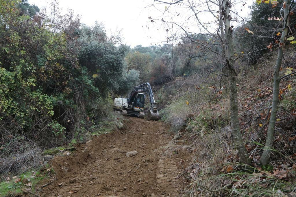 Zeytin hasat sezonunun başlamasıyla birlikte ulaşılması zor olan zeytinliklerin yollarını açmaya başlayan Evler Belediyesi, vatandaşların arazilerine daha kolay ulaşabilmesi için çalışmalarını sürdürüyor.