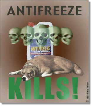 Antifriz: Antifriz, yutulduğunda toksik olan etilen glikolden oluşur. Solunması halinde baş dönmesine neden olabilir. Antifriz içmek beyin, kalp, böbrekler ve diğer organlarda ciddi hasarlara neden olur. Tatlı bir tadı olan etilen glikol çocuklara ve hayvanlara çekici gelebilir. Ek kimyasallar genellikle antifrizin tadını bozmak için güçlendirilir, ancak tüm antifrizler öyle değildir. Bu nedenle güvenli yerlerde, özellikle çocukların ve hayvanların ulaşamayacağı yerlerde saklanmalıdır.