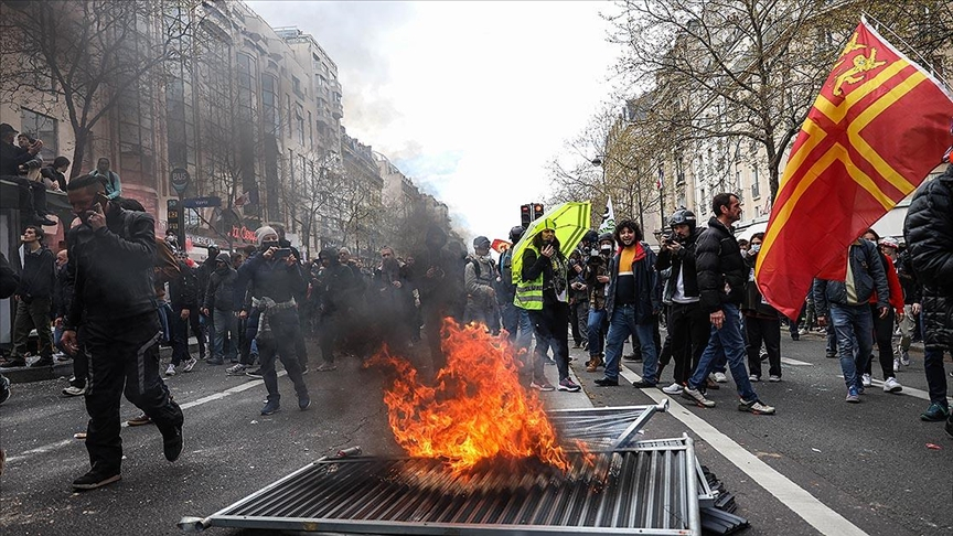 Fransa’da 16 Mart’ta patlak veren gösteriler, hükümetin emeklilik yaşının iki yıl için 62’den 64’e çıkarılmasını içeren yasa tasarısını oylamasız geçirme kararının ardından devam ediyor.