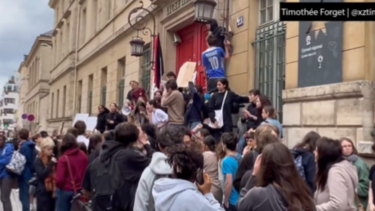Ülkenin en prestijli okullarından Henri-IV Lisesinin önünde toplanan çok sayıda öğrenci, aşırı sağcı Ulusal Birlik (RN) Partisinin AP seçimlerinde açık ara farkla birinci çıkmasını ve Cumhurbaşkanı Emmanuel Macron’un erken seçim kararını protesto etti.