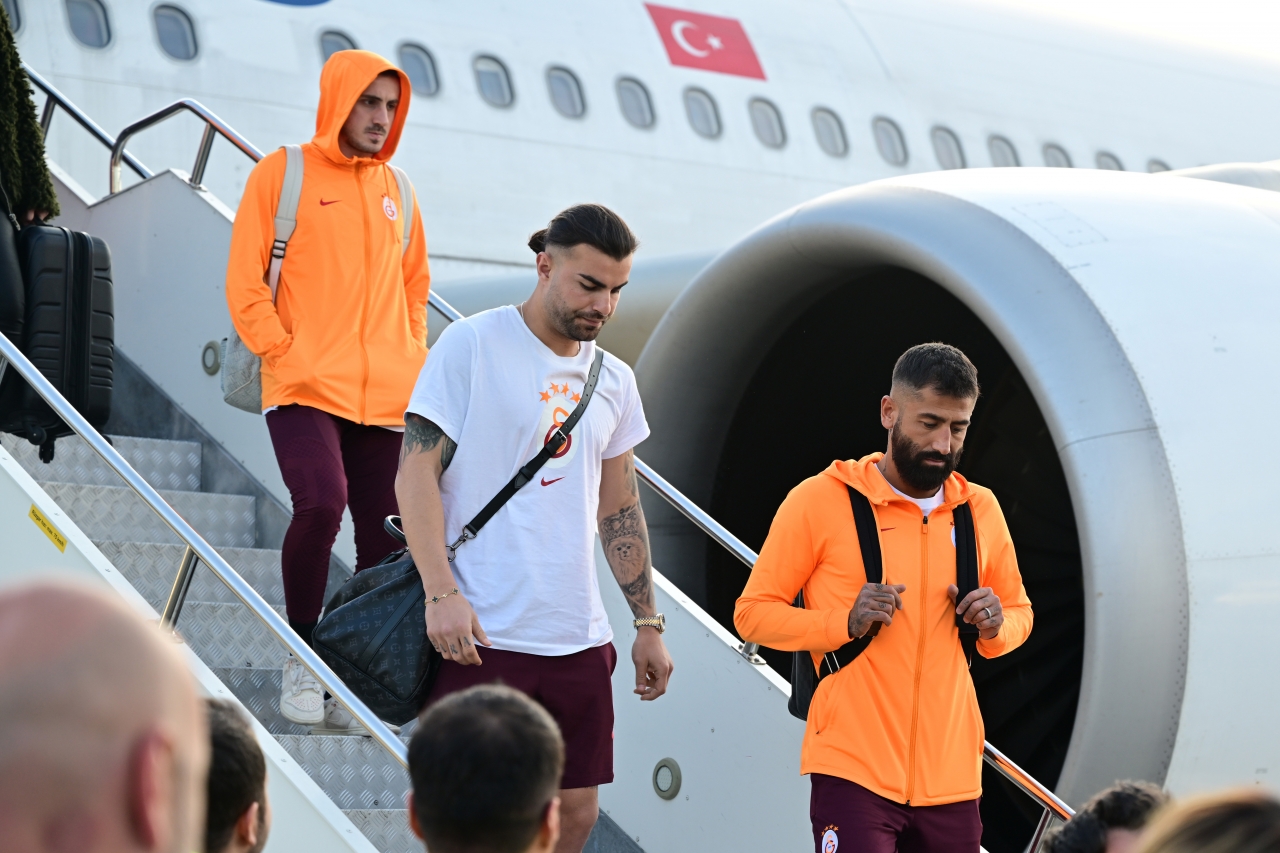 Havalimanı çıkışında sarı-kırmızılı taraftarların yoğun ilgi gösterdiği Galatasaray kafilesini taşıyan otobüs, alandan çıkmakta zorlandı.