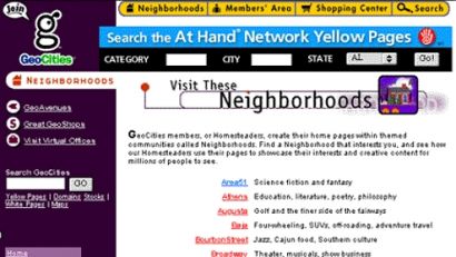 1995 yılında kurulan GeoCities ile web siteleri sadece HTML olarak oluşturulabilmektedir. İnternetin yaygınlaşmasıyla birlikte bu hizmeti kullanarak kişisel web sitelerini oluşturan kullanıcı sayısı katlanarak arttı ancak değişen İnternet kültürüyle birlikte Web 2.0’ın popülaritesi, bloglama ve sosyal ağ GeoCities’i geride bıraktı. Türkiye’de son iki yıldır tüm GeoCities web sitelerine erişim kapatılmıştır.