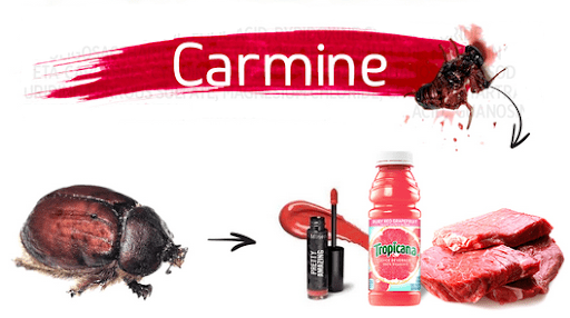 Karmin: Karmin, belirli bir kaktüs (Opuntia) bitkisinde bulunan Dactylopius coccus (veya eskiden kullanılan adı ile Coccus cacti) adı verilen bir böceğin kurutulmasıyla elde edilen kırmızı renkli bir besin boyasıdır. Bu renklendirici ayrıca ruj gibi çeşitli kozmetik ürünlerde, kırmızı renk kazandırılmış meyveli yoğurtlarda, çeşitli içeceklerde ve çubuklu (buzlu) dondurmada bulunur. Karmine karşı mesleki astım ve anaflaksi gibi reaksiyonlar oluşabilir ve bunlar büyük olasılıkla alerjik antikorlara bağlıdır.