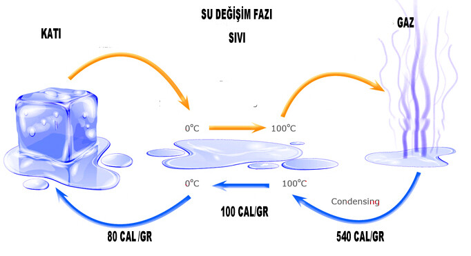 Faz değişikliklerinin muazzam bir dengeleyici etkisi vardır. Başlangıçta -20 °C’de buz örneğine sabit bir oranda ısı eklendiği göz önüne alındığında, buz sıcaklığı başlangıçta doğrusal olarak yükselir ve 0 °C’ye ulaşana kadar 0,50 kcal/h sabit bir oranda ısı emer. Bu sıcaklığa ulaşıldığında, tüm numune eriyene kadar buz erimeye başlar ve toplam 79.8 kcal/g ısı emer. Bu faz değişimi sırasında sıcaklık 0 °C’de sabit kalır. Buzun tamamı eridikten sonra, sıvı su ısınır ve 1.00 cal/°C’lik yeni bir sabit oranda ısı emer.Ayrıca, belirli sıcaklıkların faza bağlı olduğu da belirtilmelidir. Tüm sıvı buharlaştığında, su 100°C’de kaynamaya başlar ve bu faz değişimini tamamlamak için su 539 kcal/g ısı emene kadar sıcaklık tekrar sabit kalır.