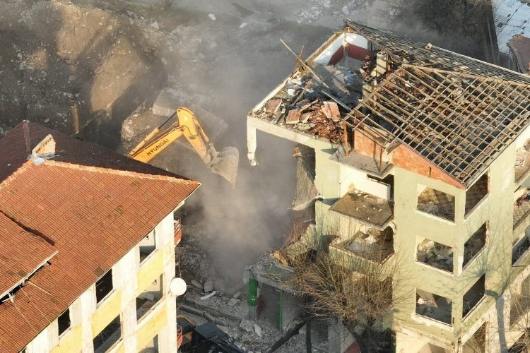 Gölcük’te 36 dönümlük alanı kapsayan merkezi kentsel dönüşüm projesinde binaların yıkımına başlandı.