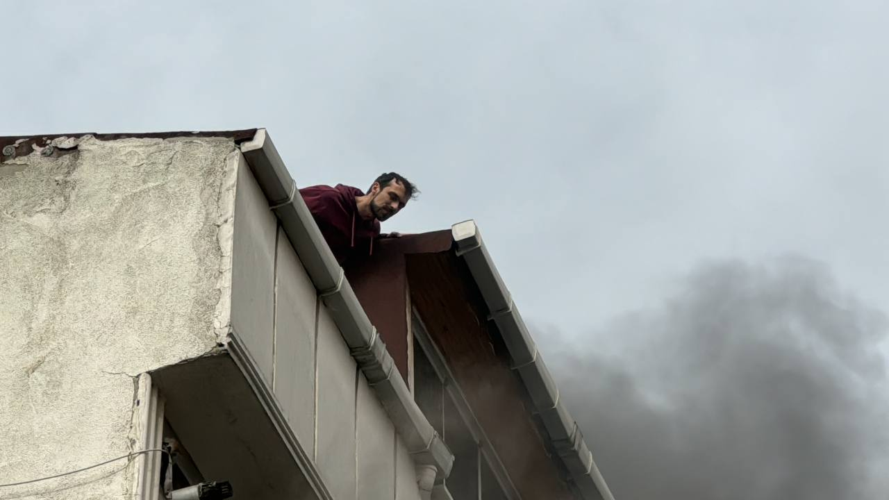 Üst katlarda mahsur kalan bina sakini dumandan etkilenmemek için çatıya çıktı.