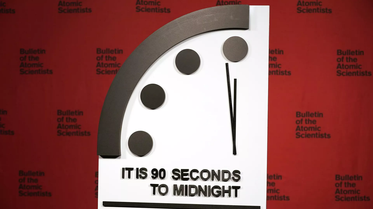 Atom Bilimcileri Bülteni’nin açıkladığı hesaplama sonuçlarına göre sembolik saat, dünyanın sonunun gelmesine 90 saniye kala, gece yarısına getirildi.