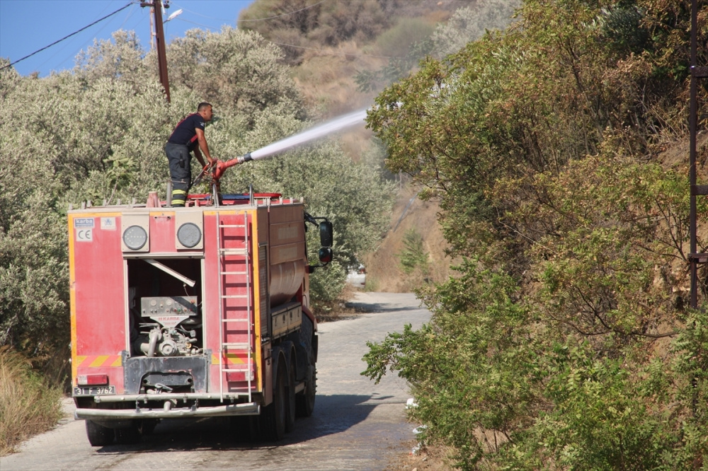 İhbar üzerine olay yerine gelen Hatay Büyükşehir Belediyesi itfaiye ekipleri yangına müdahale etti.