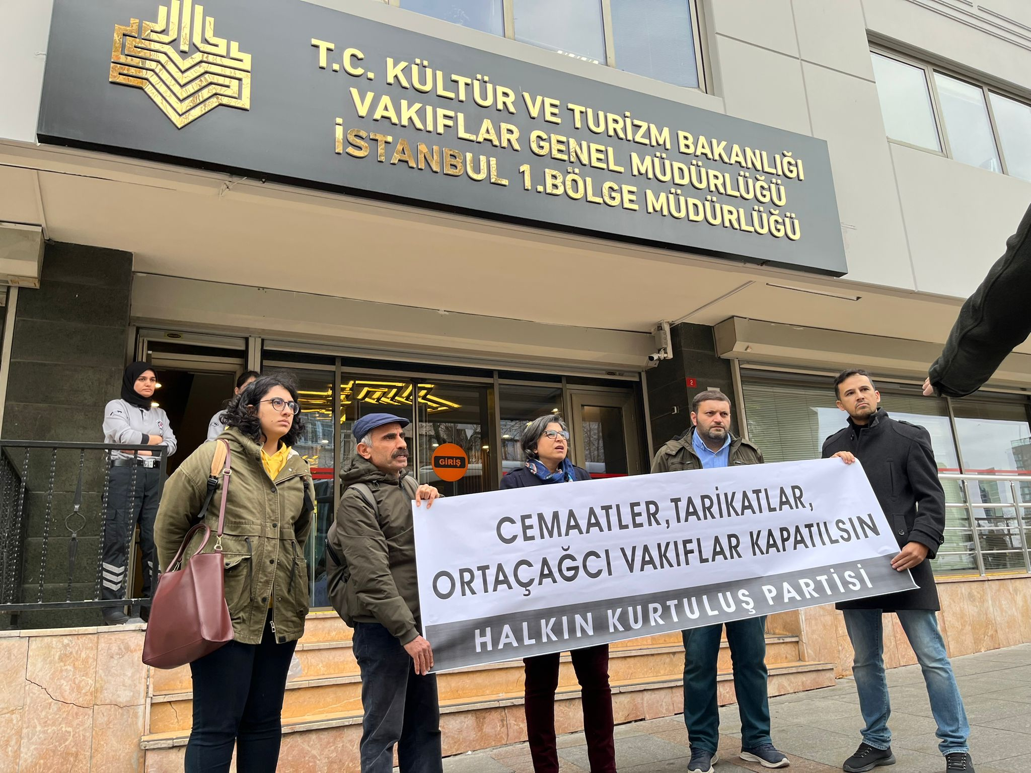 Halk Kurtuluş Partisi (HKP), çocuk istismarı skandalıyla gündeme gelen İsmail Ağa cemaatine bağlı Hiranur Vakfı’nın kapatılması için Kültür ve Turizm Bakanlığı Kurumlar Genel Müdürlüğü’ne başvurdu. Özel güvenlik, müdürlük huzurunda ifade vermek isteyen partililere müdahale etmeye çalıştı. Avukat Pınar Akbina, “Çocuk tecavüzcülerini durdurun” dedi.