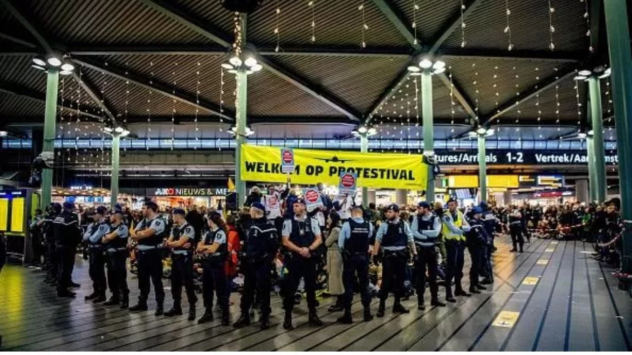 Havaalanı güvenliğinden sorumlu Kraliyet Marechaussee ve polis göstericilere müdahale etti. Birkaç iklim aktivistinin tutuklandığını belirtti.