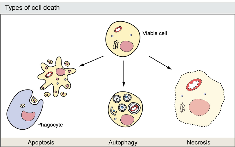Apoptoz birçok farklı şekilde ve şu şekillerde tetiklenir; Hücrenin DNA’sını, organellerini ve hücre iskeletini parçalayan kaspazlar adı verilen enzimleri aktive eder. Kaspazlar ayrıca diğer hücrelerin girmesine izin verir, böylece ölen hücrelerin kalıntıları sindirilebilir. Ancak apoptozun geç aşamalarında anastaz meydana gelirse, hayatta kalan hücreler ciddi DNA hasarı taşıyabilir ve diğer genetik hasarlar tümör oluşumuna yol açabilir.