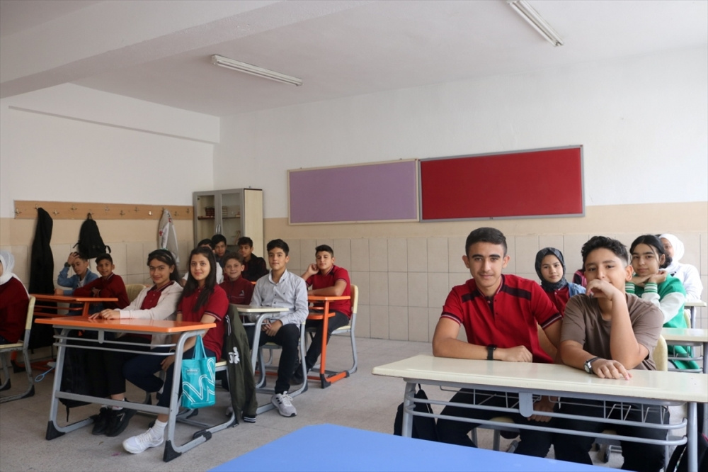 23 Nisan Havacılar Ortaokulu’na gelen öğrenciler, İstiklal Marşı’nın okunmasının ardından sınıflarına girdi. (AA)
