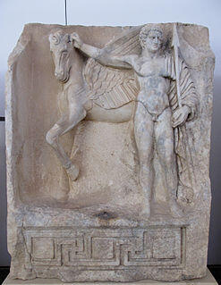 İvira Kralı Glaukos’un oğlu Hippos, bir av partisi sırasında yanlışlıkla kardeşi Belleros’u öldürür. Bu nedenle ona Bellerophontes (Belleros’u yiyen anlamına gelir) adı verildi ve Ephyra’dan sürüldü. Sürgündeki üzgün ve acınası durumdaki Bellerophontes, Argos kralına sığındı, ancak onu Likya kralına gönderdi. Likya kralı ona acımış ve onu öldürmek istemediği için Olimpos Dağı’ndaki Chimera adlı canavarı öldürmesi için ona zor bir görev vermiş. Bellerophontes, Pegasus adlı kanatlı bir ata binerek, gövdesi keçiye, başı aslana, kuyruğu yılana, ağzı aleve benzeyen canavara saldırır. Bu at gence Zeus tarafından verilmiş. Saldıran genç ona o kadar sert vurdu ki canavar yerin 7 katı yerin altına gömüldü ve ağzından sadece yerden çıkan alevler çıktı.