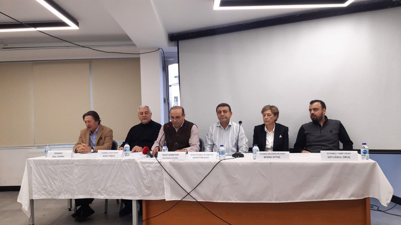 TMMOB İl Koordinasyon Kurulu, İstanbul Barosu, İstanbul Tabip Odası, İstanbul Eczacılar Odası, İstanbul Diş Hekimleri Odası, İstanbul Veterinerler Odası, İstanbul Yeminli Mali Müşavirler ve Mali Müşavirler Odası, İstanbul Mesleki Koordinasyon Odaları, TMMOB Makine Mühendisleri Odası . Basın açıklamasını Enstitü Sekreteri Süleyman Süleyman okudu.