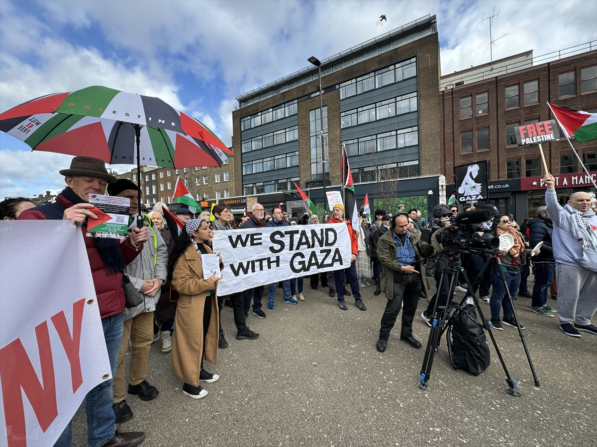 Başkent Londra’da, Gazze’de ateşkes çağrısıyla 11 eylem düzenlendi. Camden bölgesinde bir araya gelen eylemciler, ana muhalefetteki İşçi Partisi lideri Keir Starmer’ın Mornington Crescent bölgesindeki ofisine yürüdü.