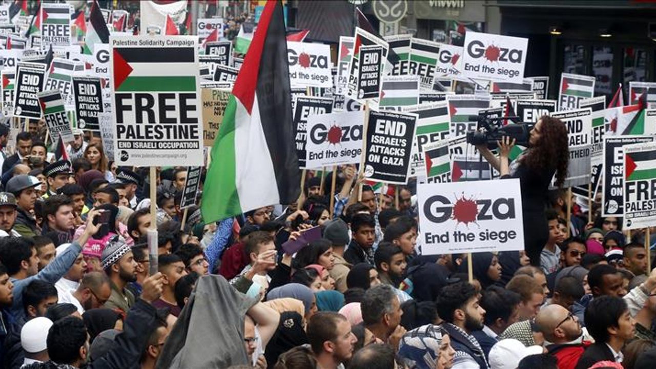 İngiltere’nin başkenti Londra’da, İsrail’in Gazze’deki operasyonlarını ve İngiltere’nin İsrail’e silah satışını protesto etmek amacıyla onbinlerce kişi ulusal yürüyüş düzenledi. Rusell Meydanı’nda toplanan kalabalık, Başbakanlık Ofisi ve bakanlıkların bulunduğu Whitehall Caddesi’ne doğru yürüdü.