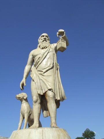 Alaycılığa ün kazandıran asıl isim Diogenes’tir. Söylentilere göre, Diyojen’in tüm ihtiyaçları elinden alınmış ve bir fıçıda yaşamıştır. Büyük İskender’e “Gölgede kalmayın, daha fazla iyilik istemiyorum” yanıtını vererek yaşam tarzını örnek verdi. Gündüzleri “ey insanlar” diye bağırdığında, elinde fenerle, “Ben pisliği değil, halkı çağırdım” diyerek çevresindekileri sopayla kovalıyor. Ve olimpiyatlardan döndüğünde birilerine kalabalık var mı diye sorduğunda, “Evet, kalabalık vardı ama çok az insan vardı” diye yanıt veriyor. Bu davranışlar alaycı düşüncenin vücut bulmuş halidir.