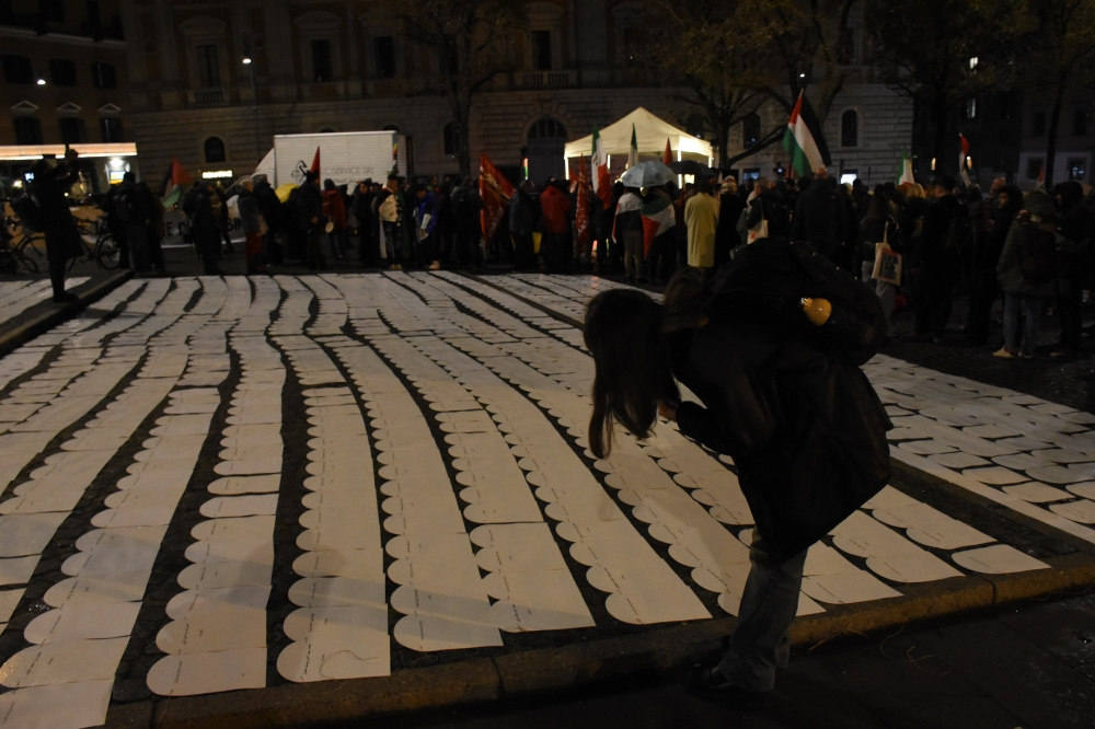 İtalya’da yaşayan Filistinliler, sivil toplum kuruluşları ve bazı işçi sendikalarının desteğiyle, İsrail’in Gazze Şeridi’ne yönelik saldırıları sonucu hayatını kaybeden binlerce Filistinli çocuğu anmak için Roma’nın Esquilino Meydanı’nda etkinlik düzenledi.
