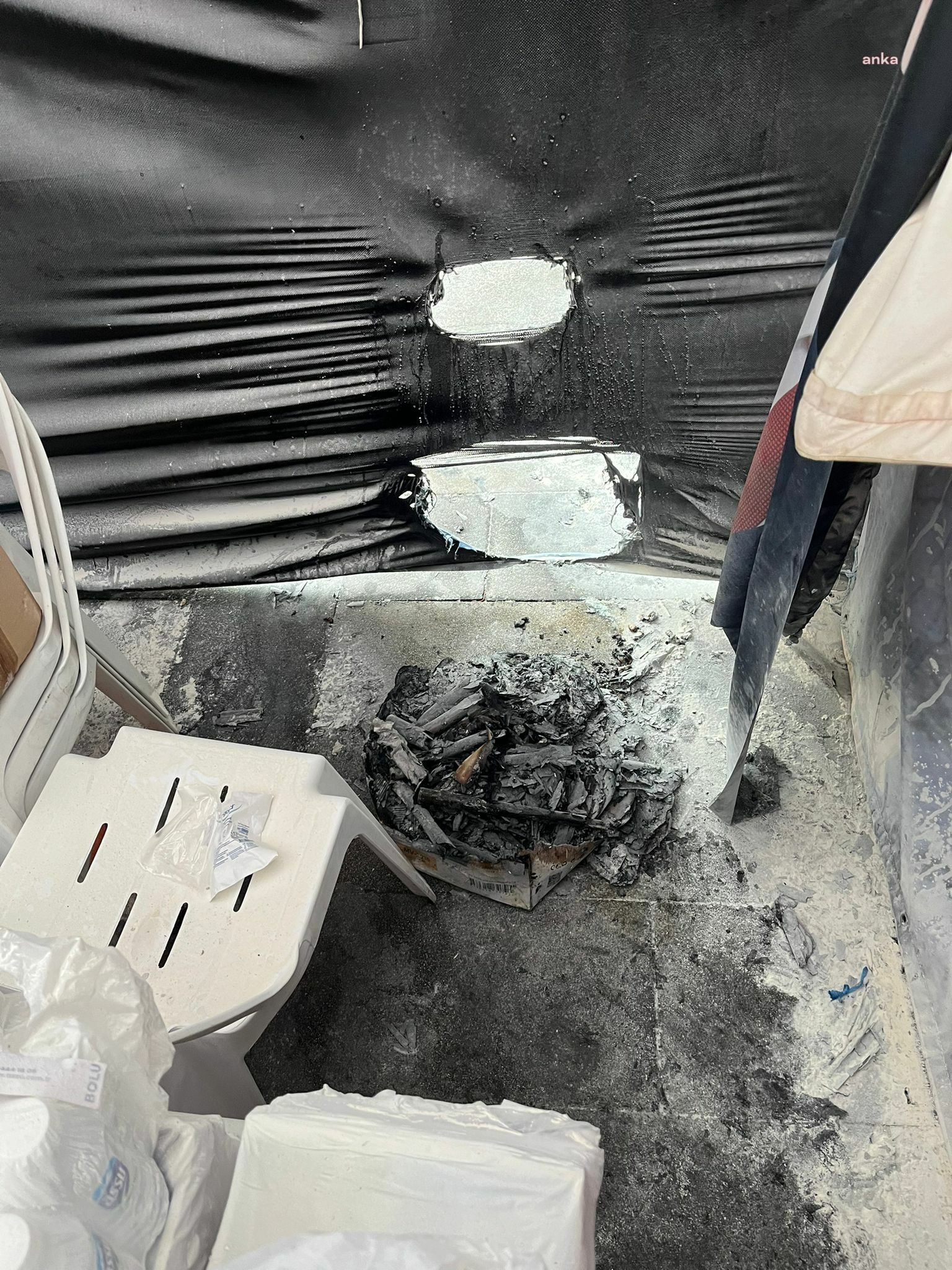 İstanbul’un Beşiktaş ilçesine bağlı Ortaköy semtinde bu sabah kimliği belirsiz kişi veya kişiler CHP seçim çadırına saldırdı. Ateşe verilen seçim çadırındaki malzemeler kullanılamaz hale geldi. Polis saldırılarla ilgili soruşturma başlattı.