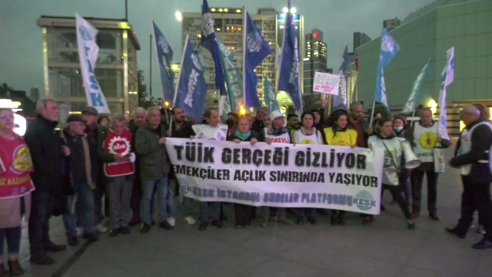 Genel Sendikalar Konfederasyonu (KESK) İstanbul şubeleri platformu, “TÜİK gerçekleri saklıyor, işçiler açlık sınırında yaşıyor” sloganıyla maaş zammını protesto etti. KESK Eşbaşkanı Mehmet Bozçek, “İstanbul, Ankara ve İzmir’de bugün ortalama konut kiraları 15-16 bin TL’ye ulaştı, gıda ve ulaşım enflasyonu yüzde 100’ü aştı, Aralık ayı sonunda reel enflasyon ise şöyle konuştu: Yüzde 160 cirolu bir ülkede asgari ücretin kamu çalışanları ve emekliler için insanca yaşanabilir bir ücret olmaktan çıkıp ortalama bir ücrete dönüştüğü bir durumla karşı karşıyayız.”