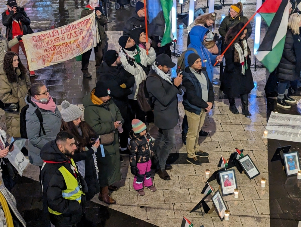 Ülkedeki çok sayıda sivil toplum kuruluşunun çağrısıyla soğuk havaya rağmen Segels Torg Meydanı’nda toplananlara, alana kurulan büyük bir ekranda öldürülen ve yaralanan gazetecilerin zor anlardaki çalışmalarını yansıtan sinevizyon gösterisi yapıldı. Katılımcılar “Özgür Filistin”, “İşgale son” sloganlarıyla İsrail katliamlarına tepki gösterirken, Filistin bayrakları da taşıdılar. Öte yandan göstericiler, İsrail ürünleri ile İsrail’e destek verdiği belirtilen bazı çok uluslu şirketlerin ürün ve hizmetlerinin boykot edilmesi çağrısında da bulundu.