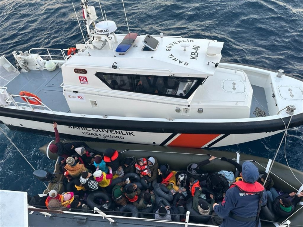 Bölgeye sevk edilen ekipler, durdurduğu lastik bottaki 40 düzensiz göçmeni yakaladı.