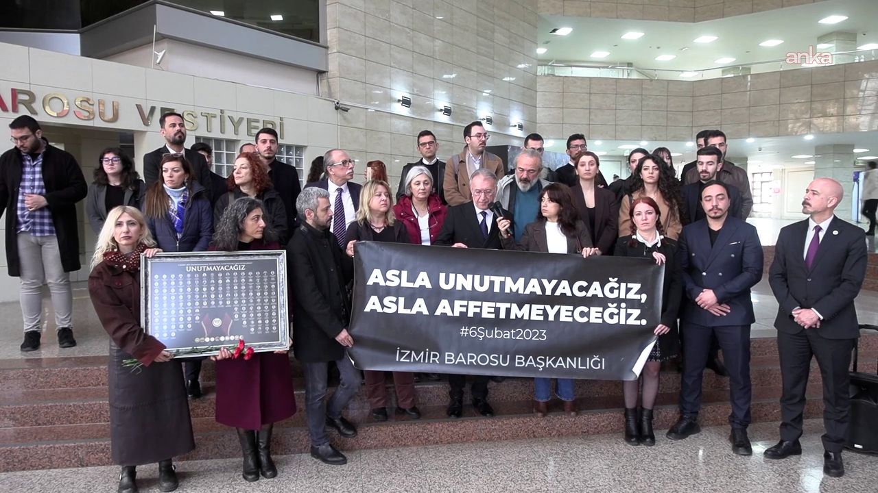 Kahramanmaraş merkezli depremlerin üzerinden geçen üç yılın ardından, depremde yaşamını yitiren avukatları anmak üzere düzenlenen basın açıklamasında İzmir Barosu yönetimi ve üyeleri hazır bulundu. İzmir Baro Başkanı Sefa Yılmaz, anma programında yaptığı konuşmada, 11 ili etkileyen felakette resmi verilere göre 53 bin 537 kişinin hayatını kaybettiğini, 121 avukatın ise yaşamını yitirdiğini hatırlattı. Yılmaz, yaşanan can kayıplarının bir “doğal afet” değil, ihmaller zincirinin bir sonucu olduğunu vurguladı.