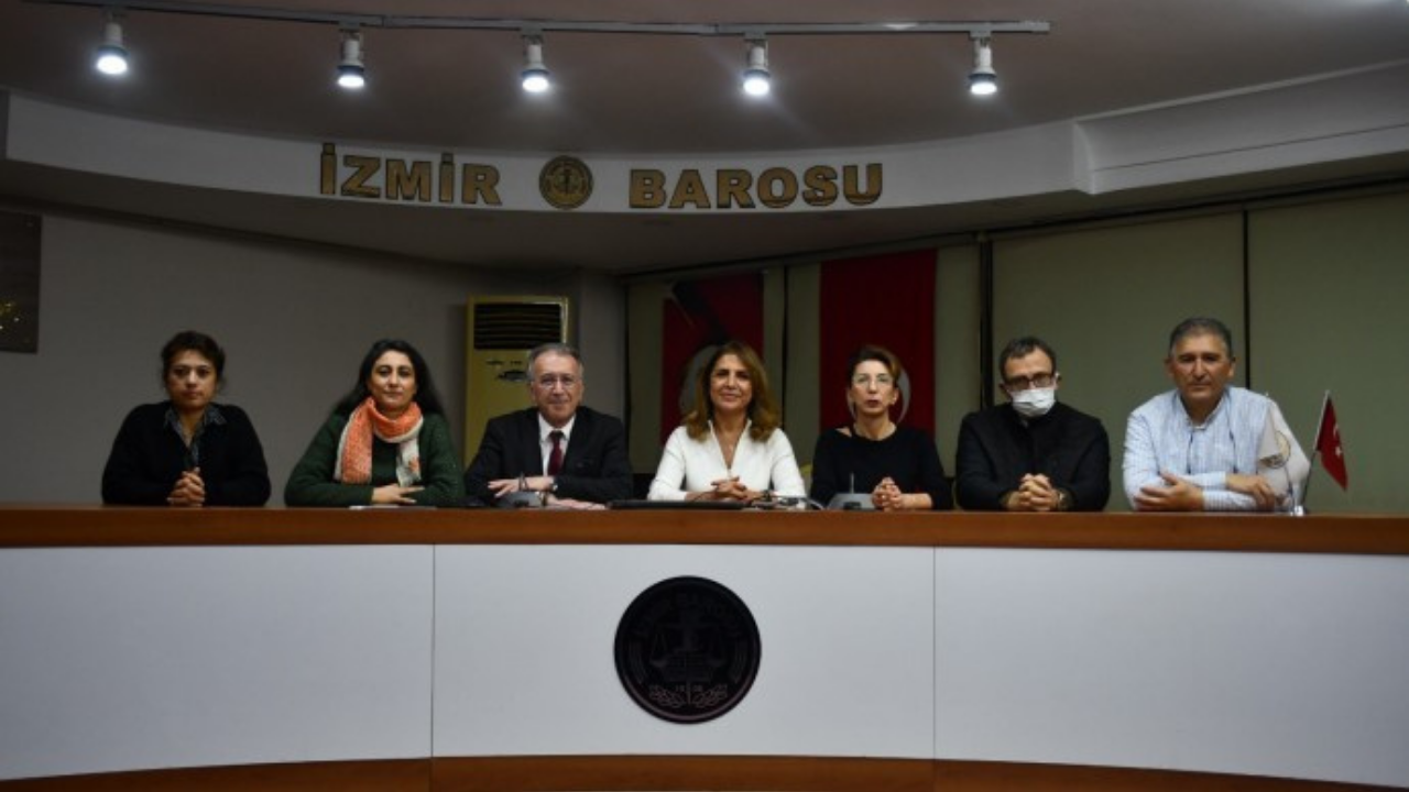 İzmir Barosu, gündemdeki anayasa değişikliği, ihlaller ve İstanbul Belediye Başkanı Ekrem İmamoğlu hakkında mahkeme kararı ve grev yasağı hakkında basın toplantısı düzenledi. İzmir Barosu Konferans Salonu’nda düzenlenen basın toplantısına Emek ve Demokrasi Güçleri’nin İzmir’deki temsilcileri de katıldı.