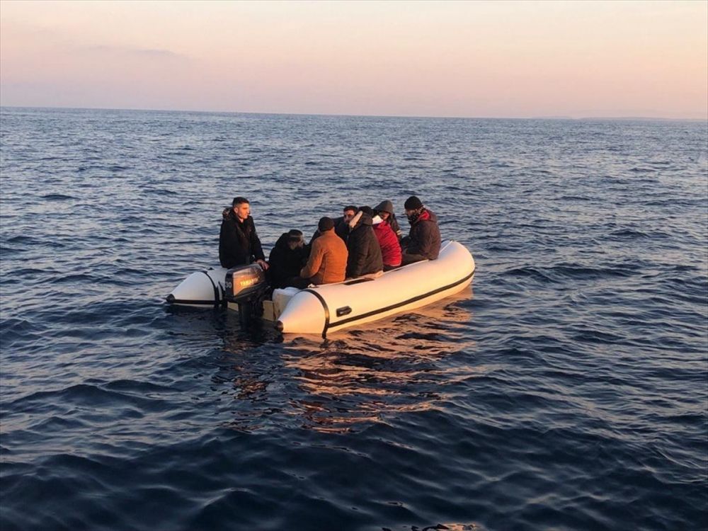 Yunan unsurlarının ittiği lastik botlarla 23 düzensiz göçmeni Türk karasularına indiren ekipler, yasadışı yollardan ülkeyi terk etmeye çalışan bir zanlıyı tutukladı.