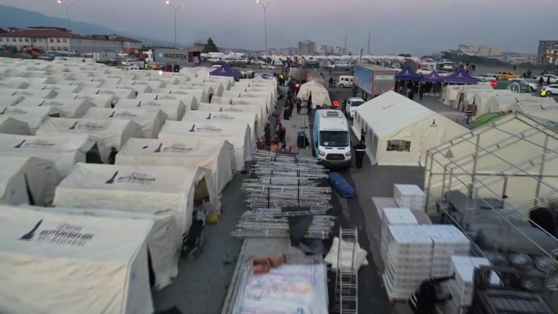 Hatay Antakya’da kurulan çadır kentte bin 377 depremzede kaldı. Üç öğün yemek dağıtılan alanda kurulan dispanserde, depremzedelerin acil sağlık ihtiyaçlarının karşılanması için müdahalelerde bulunuldu. Yeni çadır alanı, sahra hastanesi ve lojistik merkezi kısa süre içerisinde hizmete açılacak. Konteyner inşa atölyesi devam ediyor.