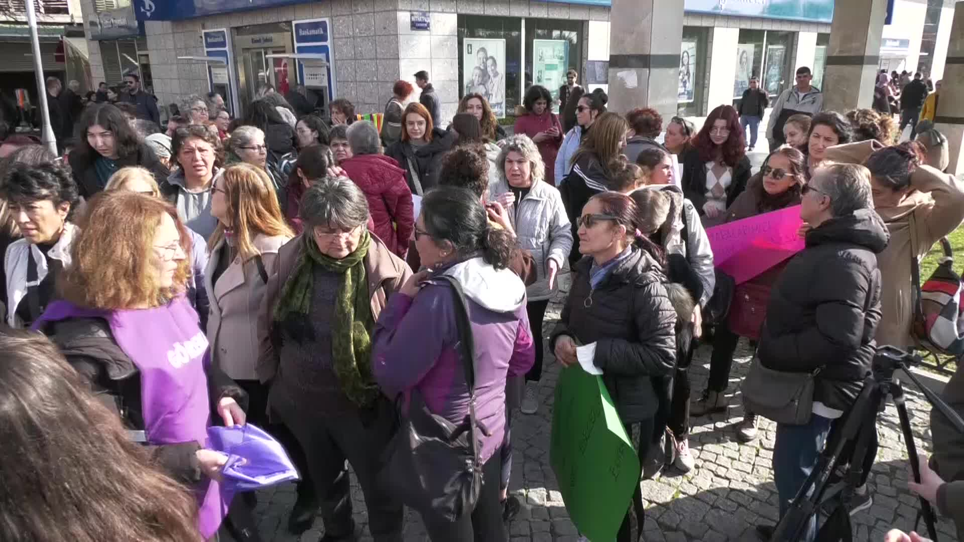Konak Meydanı’nda toplanan İzmir Kadın Platformu üyeleri, “Deprem bölgesinde kadınlar yalnız değildir” yazılı pankartlar taşırken, “Enkazları dayanışma kaldıracak” ve “Yaşasın kadınlarımızın dayanışması” pankartları taşıdı. Kadınlar, “Acil değil dayanışma”, “Adalet ve Kalkınma Partisi ellerini çek kadın”, “Diyanet çocuklara selam olsun”, “Yaşasın kadın dayanışması” gibi sloganlar attı.