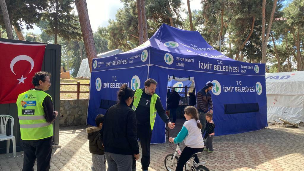 Adıyaman ve Kahramanmaraş’ta çadırkent kuran İzmit Belediyesi, Hatay Defni’de sosyal alan kurdu. Sosyal market, aktivite alanları ve Smile Cafe hizmetinin verildiği alanda Bilgi Üniversitesi iş birliği ile çocuklara psikolojik destek sağlanacak.