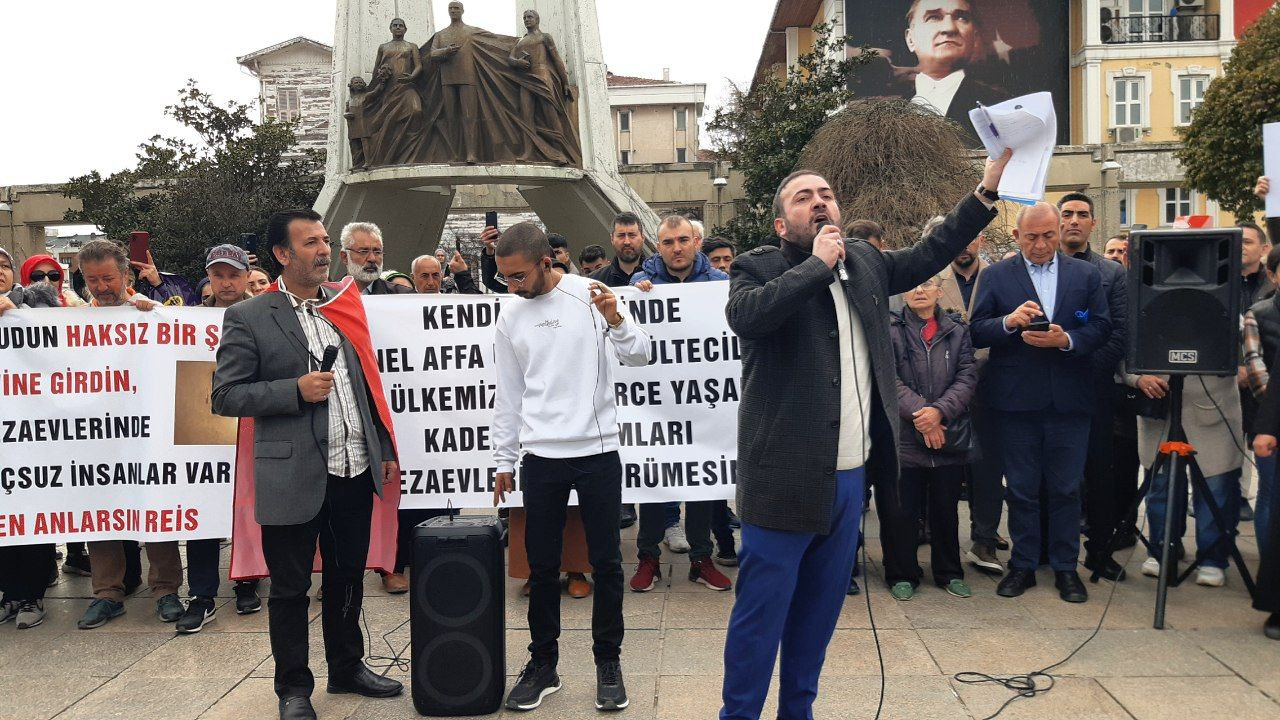 Adil Hayat Derneği adına Gülca Bulut, “Affedin Türkiye, af yok, oy yok” sloganlarının atıldığı basın açıklamasını okudu.