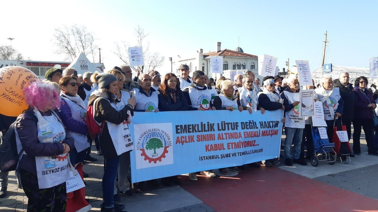 Tüm Emekliler Sendikası (All Pensioners – You), Türkiye İstatistik Kurumu’nun (TÜİK) açıkladığı verileri ve maaşlarının açlık sınırının altında kalmasını Kadıköy İskelesi’nde düzenlediği basın açıklamasıyla protesto etti. “Emeklilik haktır, lütuf değil, açlık sınırının altındaki emekli maaşlarını kabul etmiyoruz” pankartı açıldığında, “Dolaylı vergiler yerine emeklilerden ümidinizi keserseniz, birlikte mücadele edin! Adalet için çalışın” pankartı açıldı. Halkların Demokratik Partisi (HDP) İstanbul Milletvekili Zeliha Gülüm, Sol Parti yöneticileri ve çok sayıda vatandaşın katıldığı etkinliğe, Rahim Nawz açıklamayı okudu. Etkinlikte tüm emekliler adına “Sendika hakkımız engellenemez”, “AK’nin boyunu geç”, “Bütçe reşit olmayan emeklilere”, “TÜİK’e şaşırmayın” gibi sloganlar atıldı. , Numaraları çalma ”.