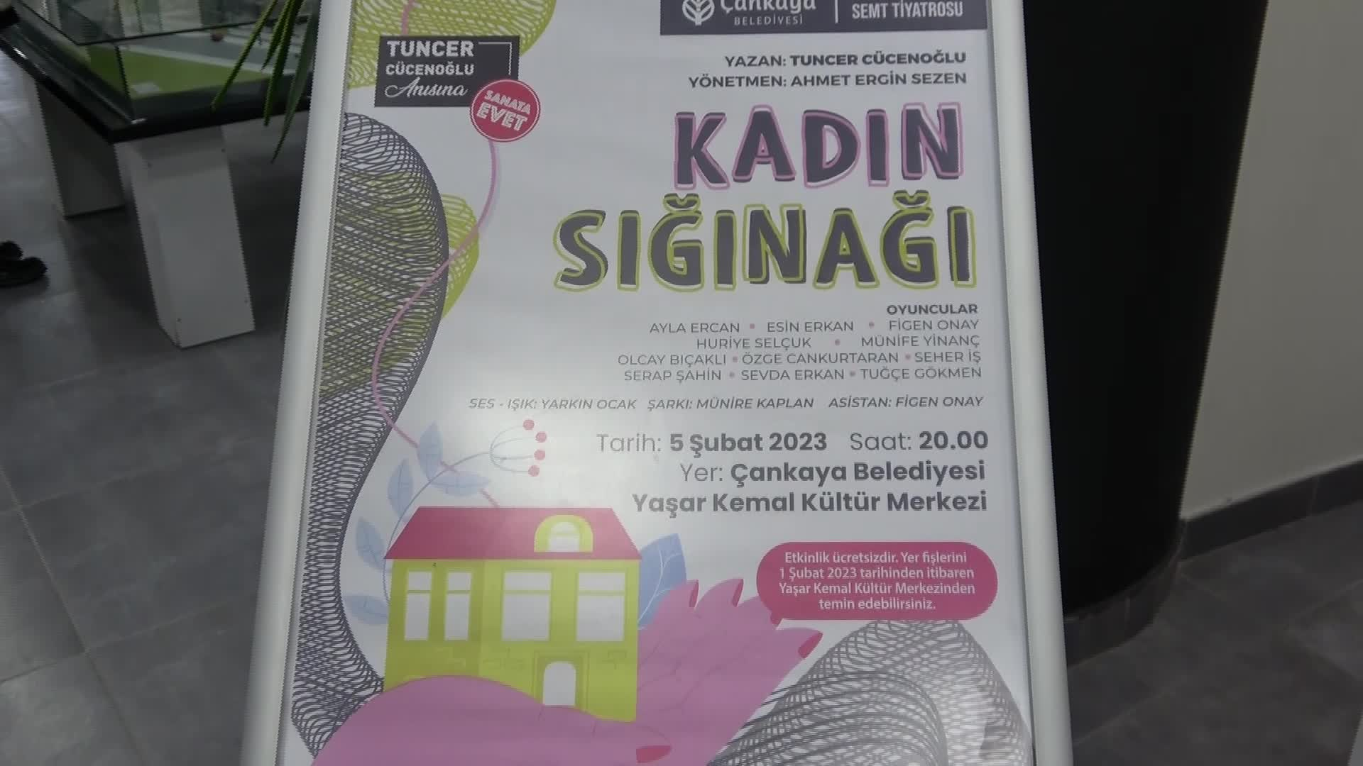 Ankara Yaşar Kemal Kültür Merkezi’nde bu akşam “Kadınlar Sığınağı” oyunu gösterildi. Yarkın Ocak’ın Genel Sanat Yönetmeni Ahmet Ergin Sezin’in yönettiği iki perdelik drama, sığınakta yaşayan 12 kadının hayatını konu alıyor. Tuncer Koçinoğlu, Figen Onay, Esin Erkan, Munif Yenanç, Ayla Erkan, Özge Cankurtaran, Sarab Şahin, Horya Selçuk, Münir Kaplan, Olcay Bekaklı, Seher Eş, Tocci Gökman’ın yazdığı oyunda.