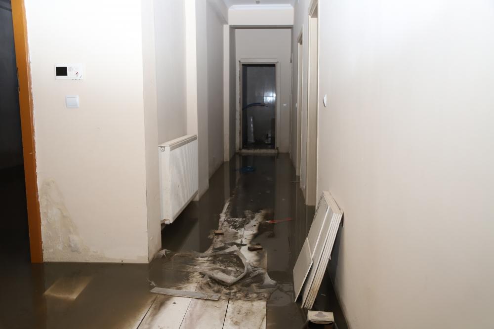 Ehitler Mahallesi’nin Hava Meydan Caddesi’ndeki apartmanın bodrum katındaki iki daire ve kiler su bastı.