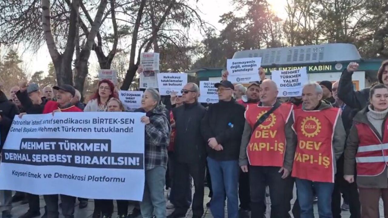 Kayseri Emek ve Demokrasi Güçleri adına yapılan açıklamada, “Sınıf sendikacısı Mehmet Türkmen’in tutukluluğunu kabul etmiyoruz. Başta Sırma Halı işçileri olmak üzere hak arayan tüm emekçiler yalnız değildir” denildi.