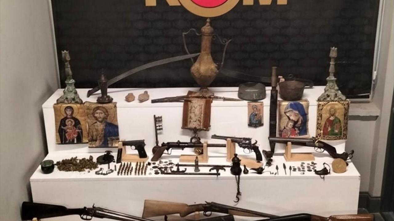 Operasyonda tarihi eser niteliği taşıdığı değerlendirilen, yaklaşık 100 kilogramlık sütun, kılıçlar, şamdan, yüzük ve sikkenin bulunduğu 106 obje ele geçirildi.
