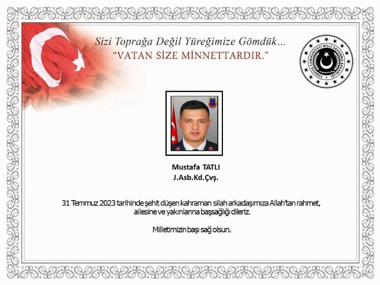 Afyonkarahisar’ın Sultandağı ilçesinde meydana gelen kaza yerinde güvenlik önlemi alırken kamyonetin çarptığı 33 yaşındaki Jandarma Astsubay Kıdemli Çavuş Mustafa Tatlı şehit oldu.