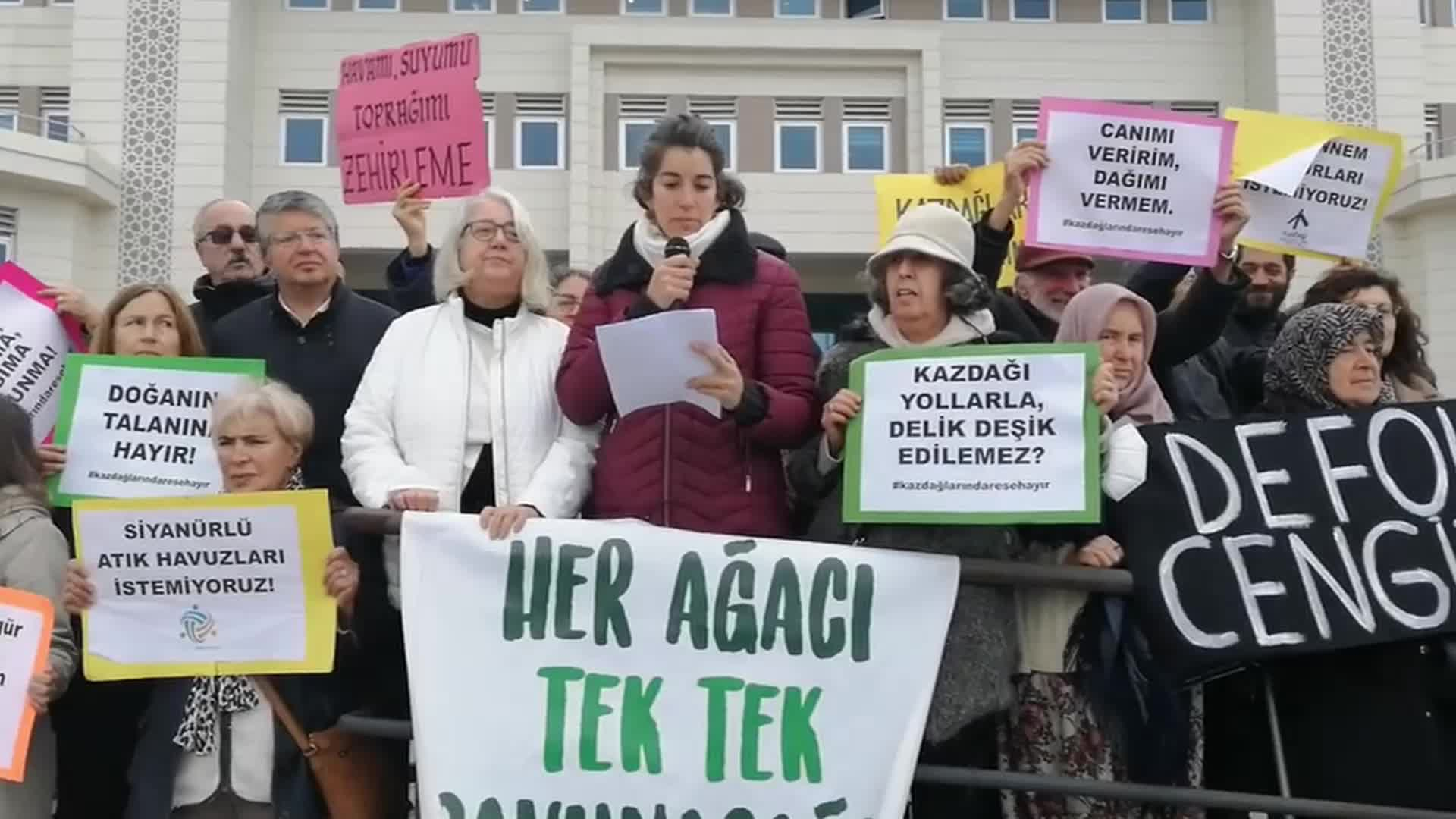 Kazdağları Çevre Platformu, Cengiz Holding’in Halilağa Bakır-Altın Madeni’ne açtığı davanın duruşması öncesi Çanakkale Mahkemesi’nde; Proje, Kazdağı ekosisteminde çok büyük bir alanda tahribata yol açacak, 200 metre derinlikte ölüm çukurları açacak ve 3 köyü haritadan silecek” dedi. Dava ileri bir tarihe ertelendi.