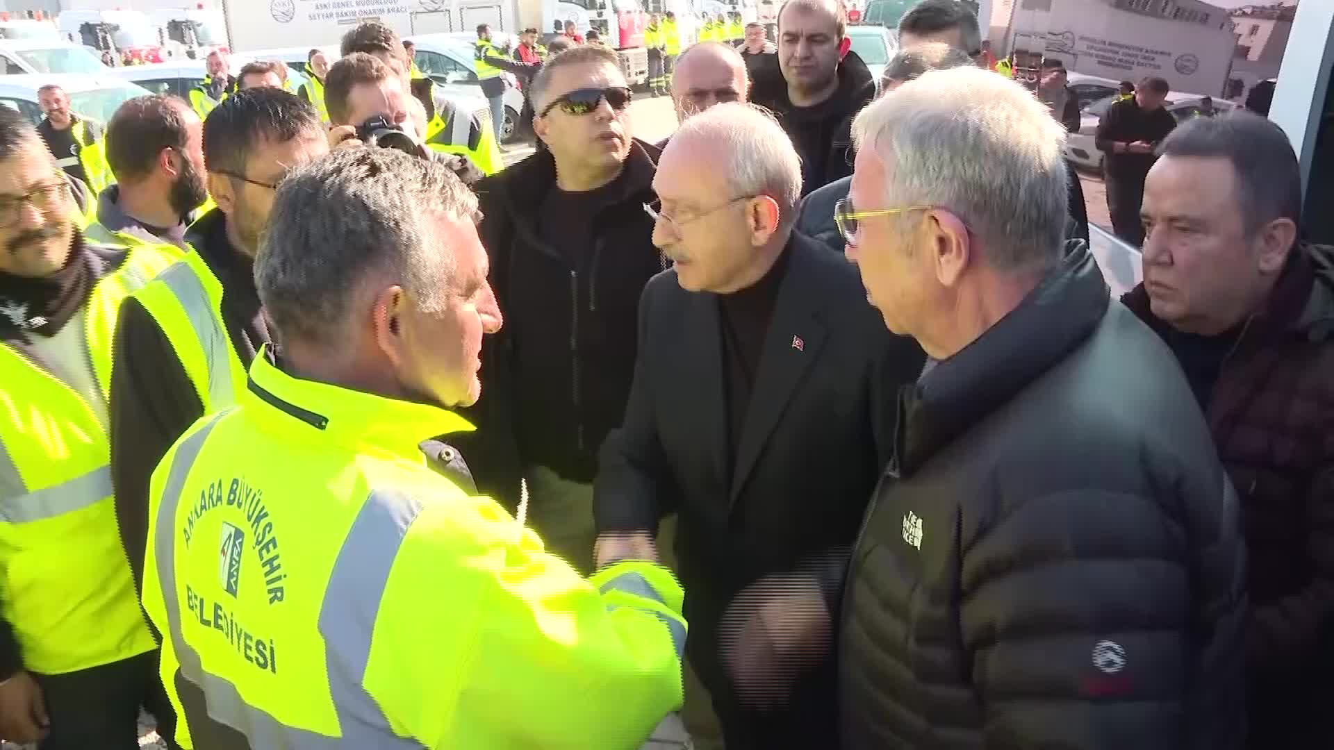 Mansur Yavaş, “Kahramanmaraş’ta kaçak su fark edildi. Enkaza su girmesin bu sefer su acilleri var” dedi. “Gerçekten çok güzel bir hizmet yaptınız. Türkiye size minnettar. Biz buraya moloz söküp su yalıtımı yaptıramayacağız ama siz bu işin uzmanısınız. Bu işte ustalaştınız. Tecrübe kazandınız. Dolayısıyla , sorunla baş etme yeteneğiniz var” diyen Kılıçdaroğlu, “Teşekkürler” dedi.