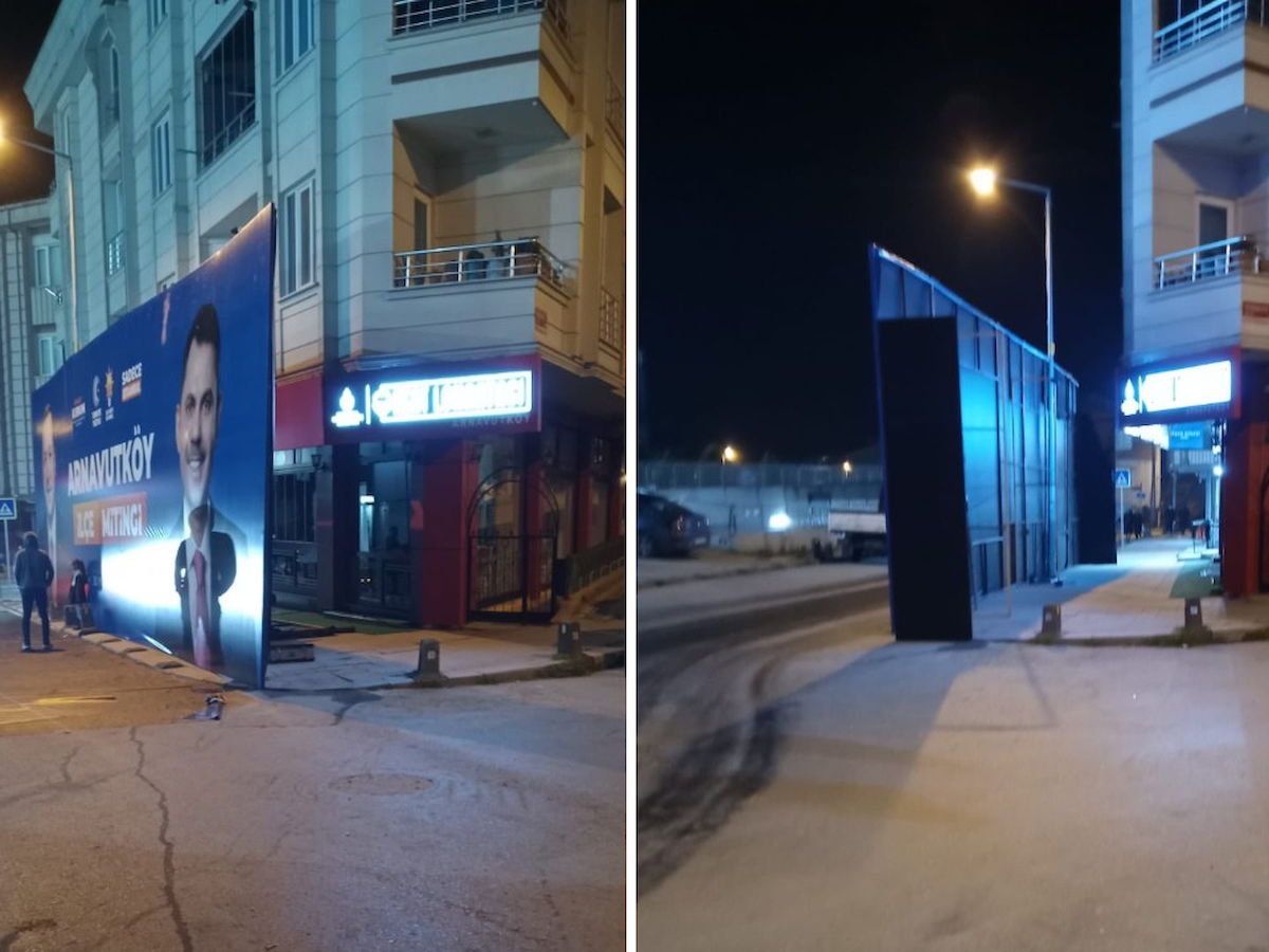 Erdoğan’ın ziyareti öncesi İBB’nin Arnavutköy Kent Lokantası’nın görünmemesi için önüne Cumhur İttifakı adayı Murat Kurum’un afişi yerleştirildi…