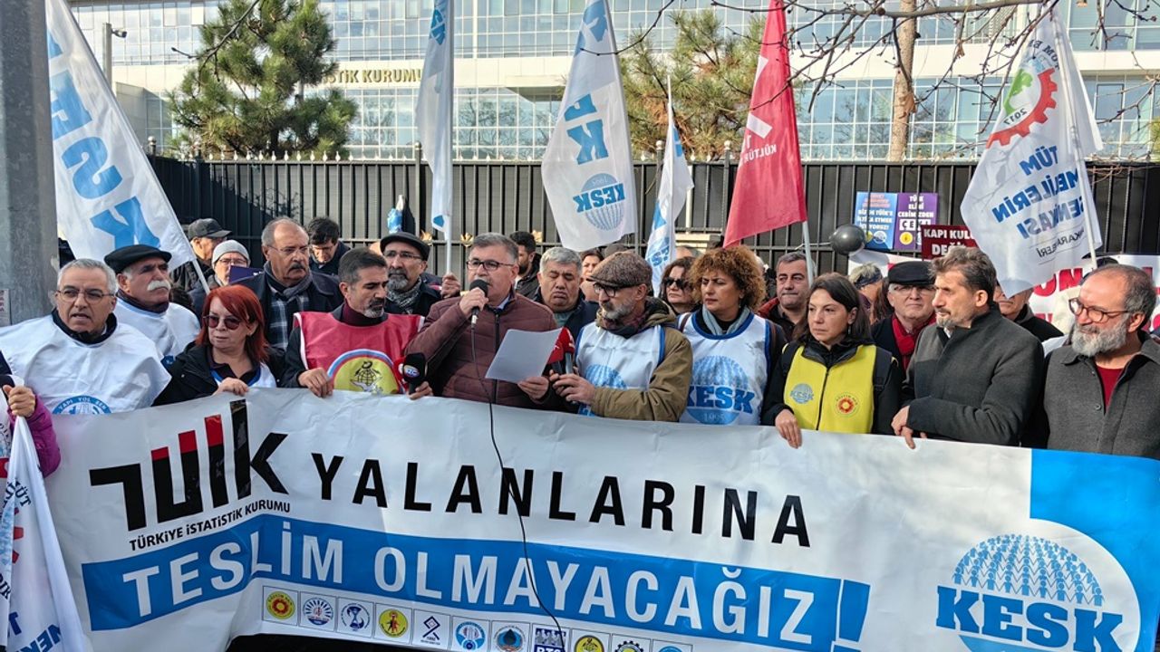 Kamu Emekçileri Sendikaları Konfederasyonu (KESK) üyeleri, Türkiye İstatistik Kurumu’nun (TÜİK) açıkladığı 2025 yılı aralık ayı enflasyon verilerine tepki göstererek 14 Ocak tarihinde ülke genelinde iş bırakma eylemi yapacaklarını duyurdu. Ankara’da bulunan TÜİK binası önünde bir araya gelen konfederasyon üyeleri, TÜİK verilerinin açıklanmasının ardından yurdun farklı yerlerinde bulunan TÜİK binaları önünde toplandı. Ankara’da TÜİK binası önünde bir araya gelen KESK üyeleri, “Karanlığa teslim olmayacağız”, “Yoksulluk gerçek, rakamlar sahte”, “Gelirde adalet, vergide adalet istiyoruz” sloganları attı.