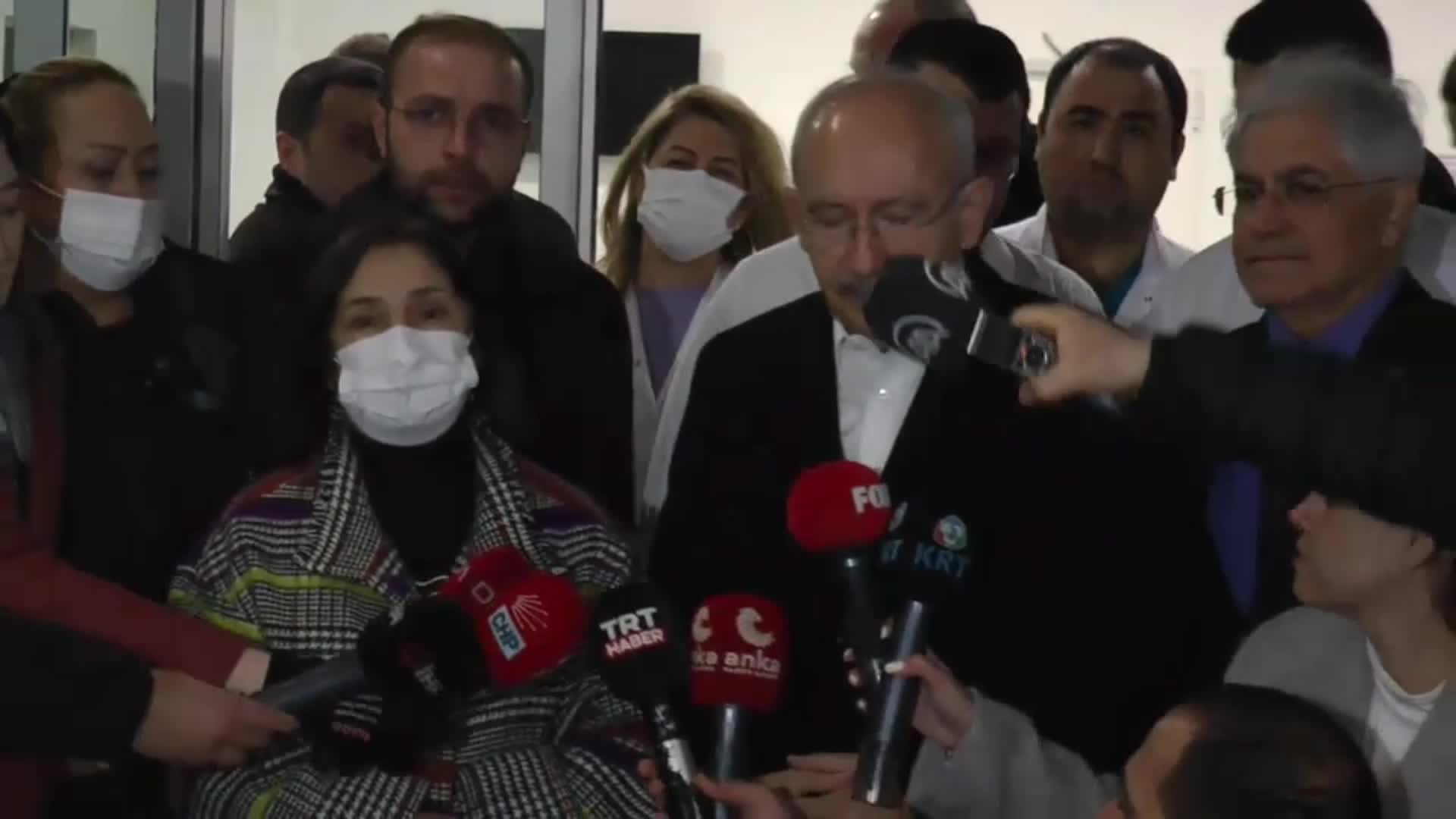 CHP Genel Başkanı Kemal Kılıçdaroğlu, eşi Sylvie Kılıçdaroğlu ile birlikte Bilkent Şehir Hastanesi’nde tedavi altına alınan depremzedeleri ziyaret etti. Kılıçdaroğlu, ziyaretinin ardından açıklamalarda bulundu. Açıklamaya CHP Ankara Milletvekili Servet Ünsal da katıldı.