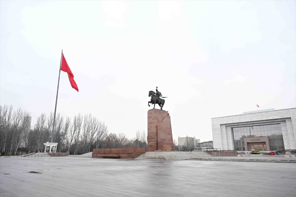 Kırgızistan’da tasarımında değişiklik yapılan ulusal bayrak, Bişkek’te göndere çekildi