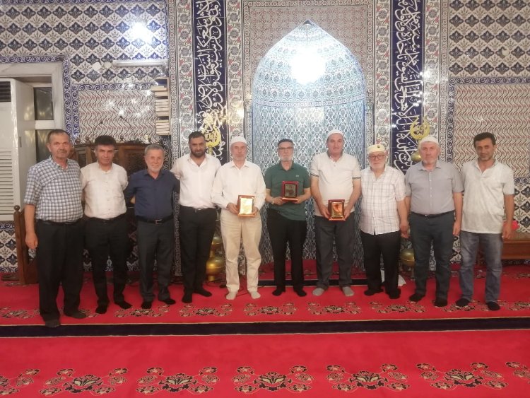 Gecede Mehmet Yiğit ve emekli imamlara plaket takdim edildi ve Kuran-ı Kerim okundu.