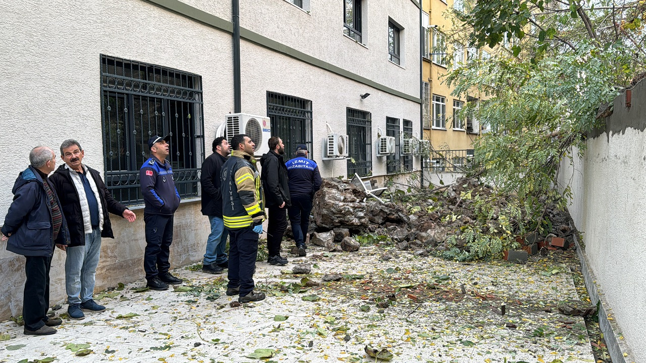 Taş parçaları, caddenin altındaki İzmit İlçe Milli Eğitim Müdürlüğü’nün arka bahçesine düştü.