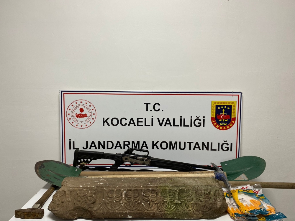 Kocaeli’nin Karamürsel ilçesinde Roma dönemine ait olduğu değerlendirilen lahit parçası ele geçirildi, 7 şüpheli hakkında adli tahkikat başlatıldı.