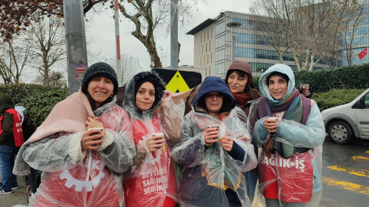 Dev Sağlık İş üyesi oldukları için Koç Üniversitesi Hastanesi’nden ihraç edilen ve hastane önünde 6 gün direnen işçiler de tedbire destek verdi. Soğuk ve yağışlı havaya rağmen hastane önünde direnişlerini sürdüren işçiler, “Taleplerimiz kabul edilene kadar çalışmalarımızı sürdüreceğiz” dedi.