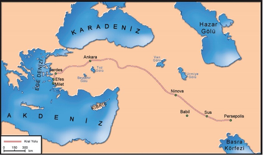 Darius, kuryelerin Efes ile Mezopotamya arasında daha hızlı seyahat etmesini sağlayarak iletişimi hızlandırmak için yol yüzeyini iyileştirerek bu rotayı daha kullanışlı hale getirdi. Bu sayede taşıyıcılar 2 bin 700 kilometrelik bu rotayı yedi günde tamamlayabiliyor. Konaklama yerleri de bu dönemde yapılmıştır. Bu tarihten sonra bu yola Pers Kral Yolu adı verilmiştir.